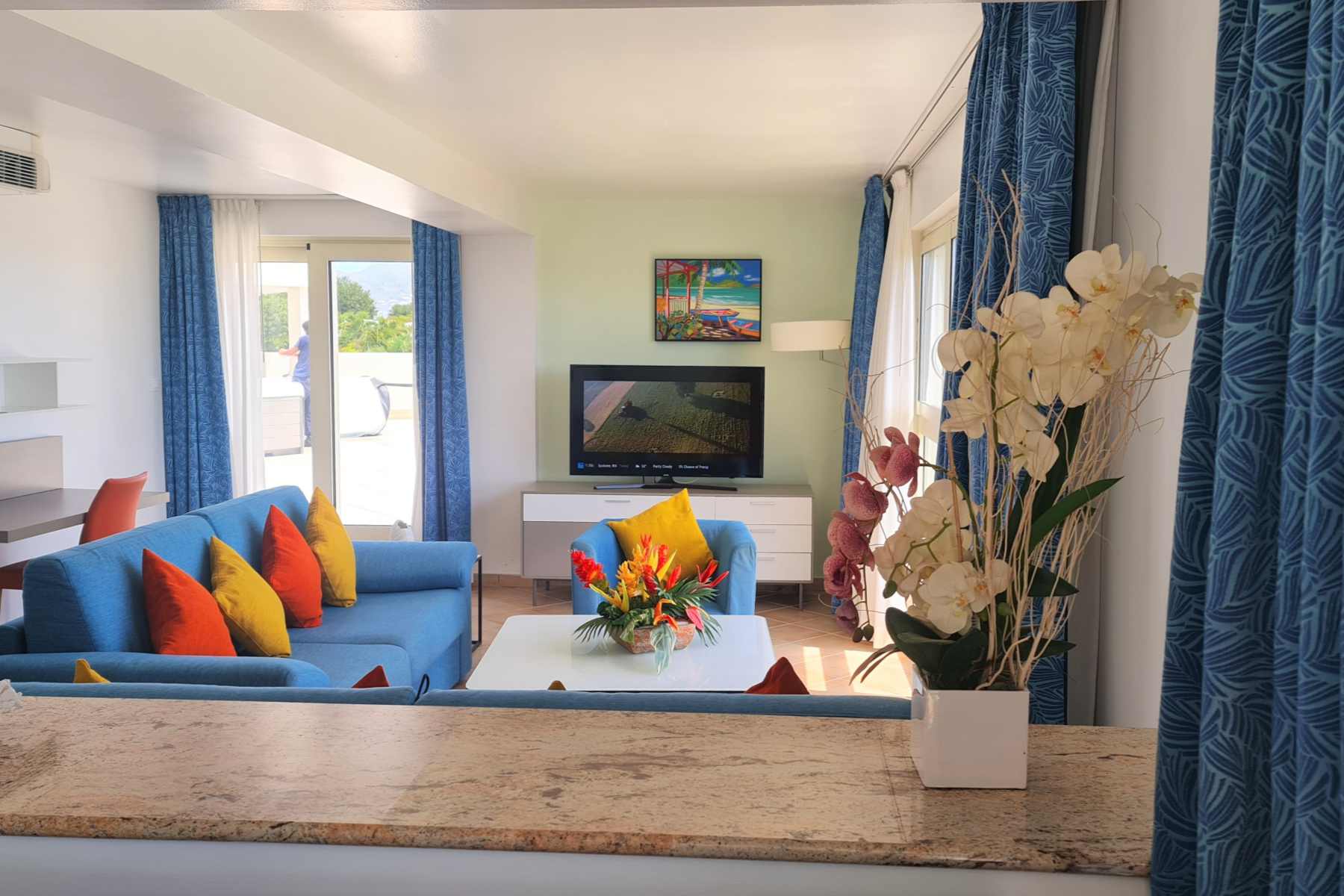 Perched atop of the resort, this penthouse offers panoramic views of the Sapphire Pool, Maho Beach, and plane approaches.